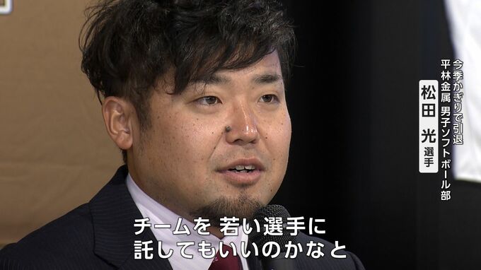 日本の男子ソフトボール界をけん引してきた選手が一線を退きます。国内での最後の大会を終えた平林金属男子ソフトボール部の松田光選手が引退会見を開き、仲間や地元ファンらに感謝の思いを語りました。