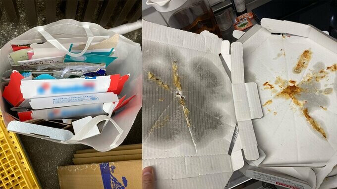 続けて、「油汚れのダンボールは例えばピザの箱です。汚れがあるとリサイクルできないので、ご注意ください。」と説明しました。
