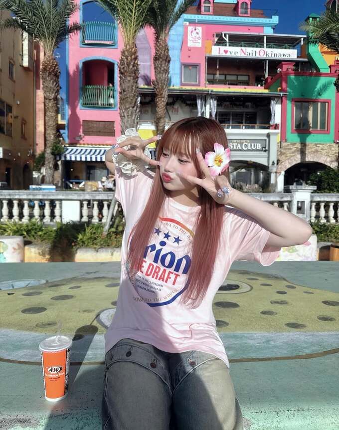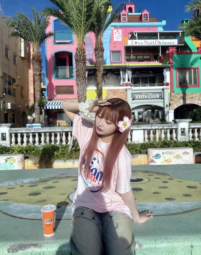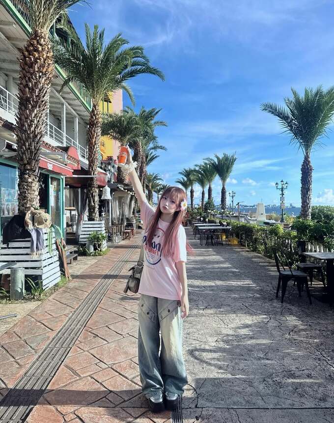 続けて、「写真スポット多くて可愛い 沖縄さいこー!!!」とコメントを添え、リゾート地での楽しいひとときを公開しました。