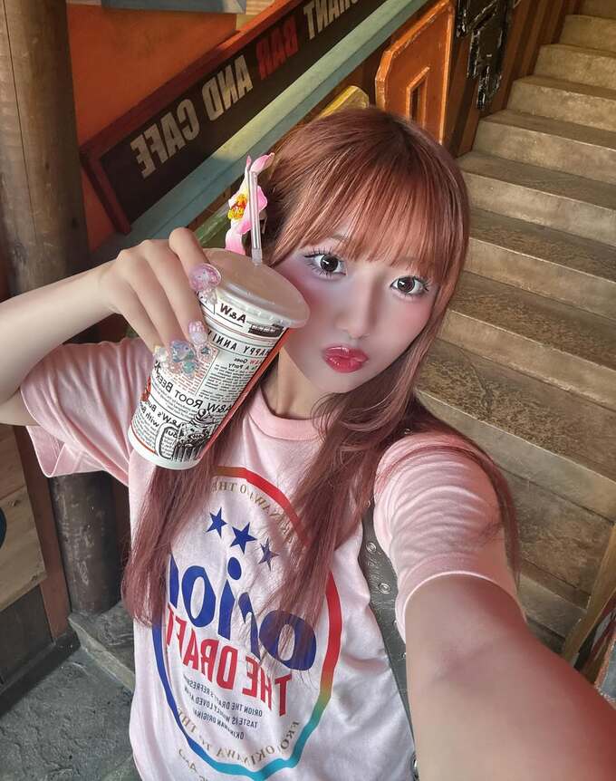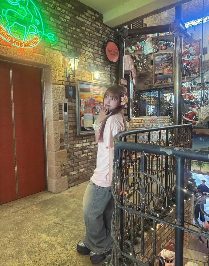 希空さんは、ピンク色のオリオンビールTシャツとデニムパンツという爽やかなコーディネートで、頭には白い花の髪飾りをつけた姿で登場。
