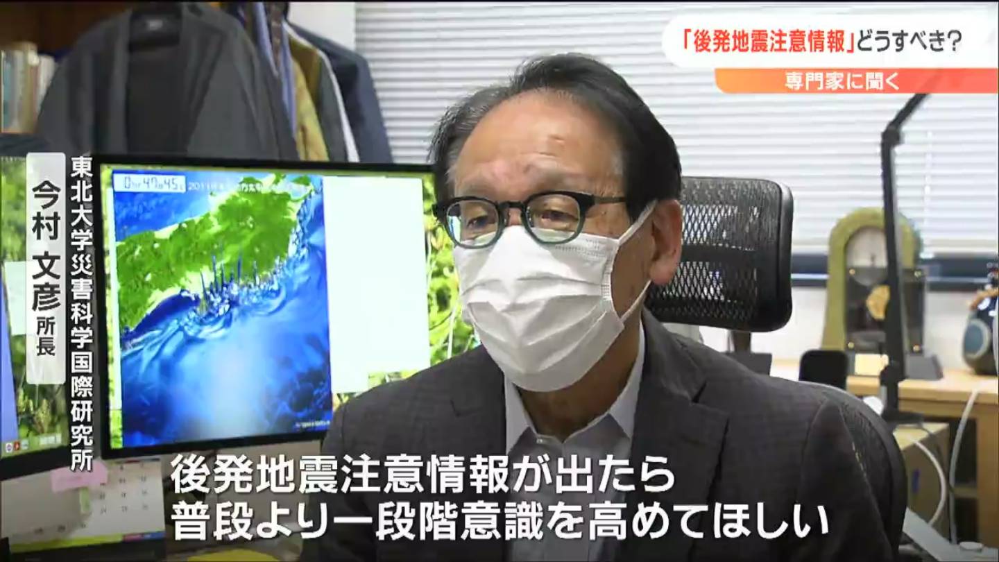「後発地震注意情報が出たら、普段よりも一段階意識を高めてもらいたい。また、時間帯や季節によって避難の経路や持ち出し品が若干違うと思うので、そういうものを点検し、冷静かつ迅速に行動できるように準備をしてほしい」