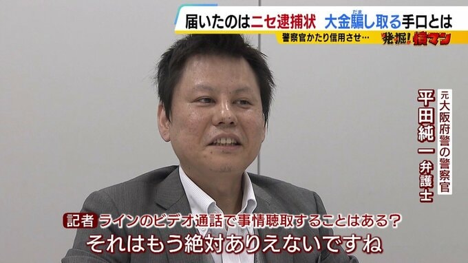 10年間大阪府警で警察官として働いたこともある平田純一弁護士に今回の手口、例えば、「LINEのビデオ通話で事情聴取することはあるのか」などを聞きました。