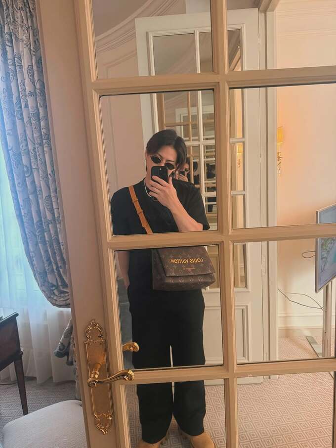 投稿された画像では、平野紫耀さんが空港のベンチに腰掛ける姿や、ホテルの部屋で、高級ブランド「ルイ・ヴィトン」のバッグを肩にかけ自撮りする様子などが見て取れます。