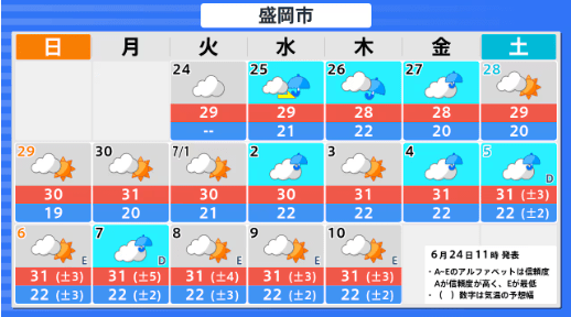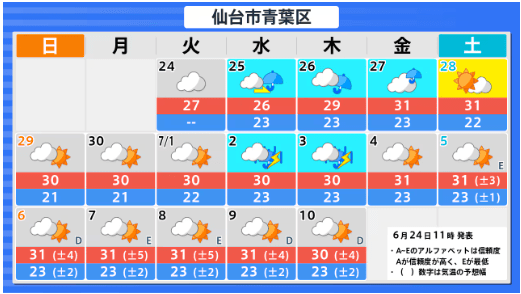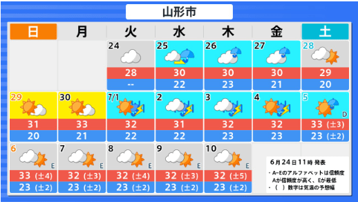 2週間気温予報 北・東・西日本の向こう2週間の気温は高い日が多い予報 熱中症に注意 今後の全国・東北6県の天気は 気象庁 テレビユー山形 2025年6月24日(火) 15:20 国内 ■東北6県の今後の天気は 画像はTBS NEWS DIG Powered by JNNより 画像ありの記事を最初から https://newsdig.tbs.co.jp/articles/-/1999587?display=1
