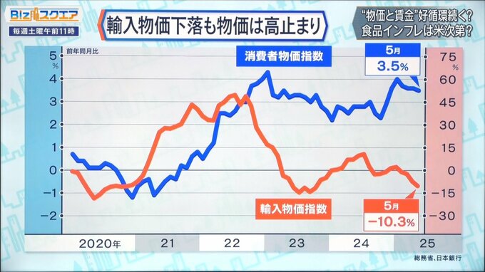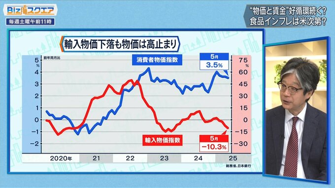 ーーまずは、【物価】について。穀物も原油も上がり、しかも円安で輸入物価が上がっている。だから物価が上がっているというのがこれまでの説明だが、最近は輸入物価が下がっても物価が下がらない。