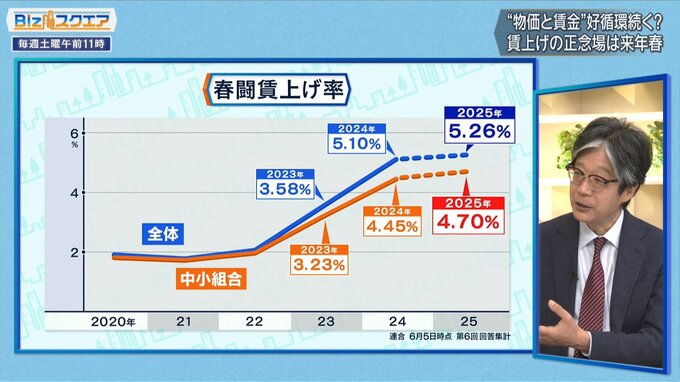 「連合はこの3年ほど“賃上げ率5%をターゲット”として実現できているが、実はこの5%の背後にある物価上昇率は2%。2%なら賃上げ率5%でもつり合うが、足元の物価上昇率は3%になってしまっているので【賃上げ率5%水準でもまだ不十分】ということ。ここをもう少し工夫する余地がある」