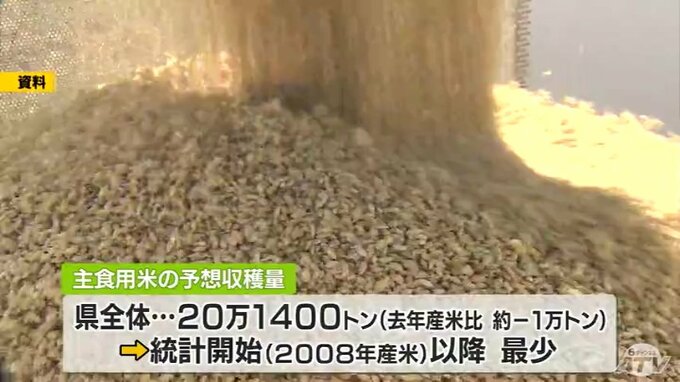 今年2022年産のコメの出来具合をあらわす作況指数は、青森県全体で99の「平年並み」の見通しで、主食用米の予想収穫量は去年を約1万トン下回る20万1400トンと過去最も少なくなりました。
