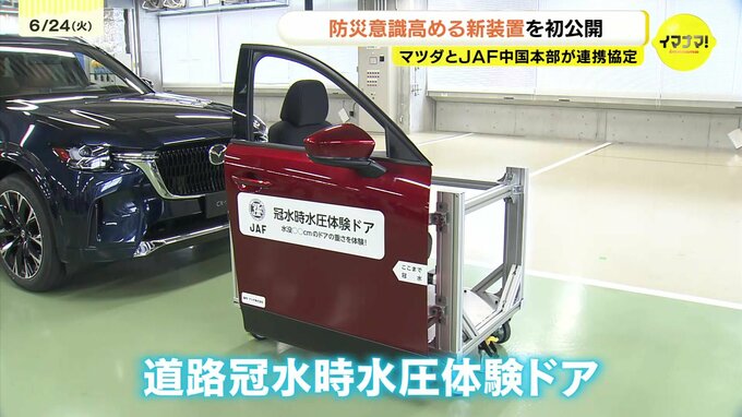 白山貴浩 記者「こちらが、冠水時にドアにかかる水圧を体験できる装置です。実際に明けてみます。結構重い、全然開かないです」