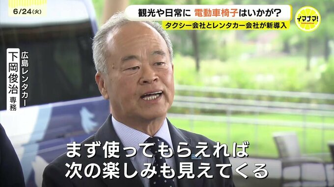 観光や日常でも近距離モビリティーである電動車椅子を利用してもらおうと、中国地方では初めて、タクシー会社とレンタカー会社とサービスを始めました。