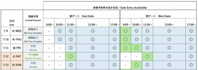 7月は 西ゲートを狙え?朝イチ入場枠が結構あり!