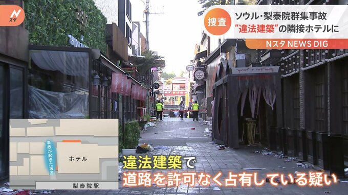 156人が死亡した韓国ソウル・梨泰院の群集事故で、きょうも動きがありました。捜査当局は、違法建築の疑いで現場に隣接するホテルの家宅捜索に乗り出しました。特別捜査本部がきょう家宅捜索に入ったのは、梨泰院…
