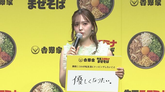 25日、モデルでタレントの藤田ニコルさんが、牛丼チェーン『吉野家』の「新商品・新CM発表会」に登壇しました。