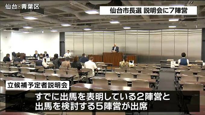 説明会には、仙台市長選への出馬をすでに表明している2つの陣営と出馬を検討している6つの陣営の合わせて8陣営が出席しました。