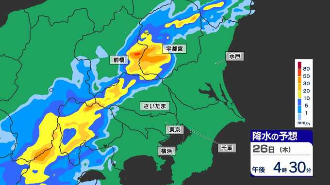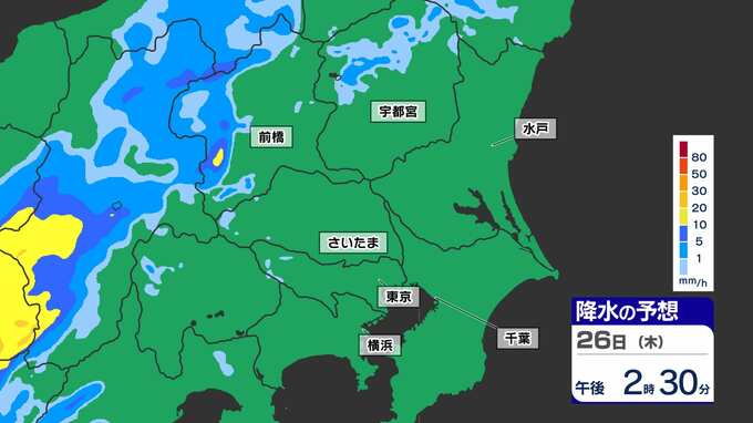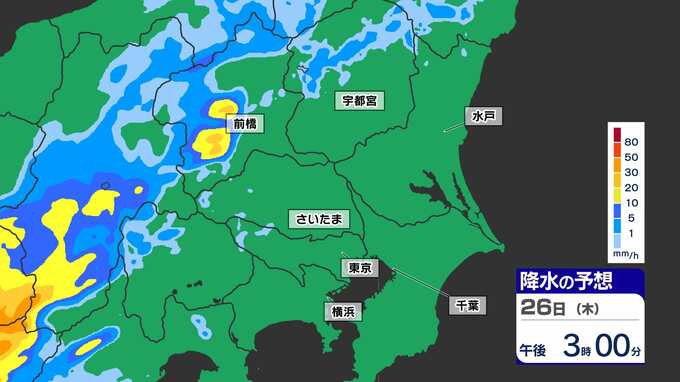 【東京首都圏 ゲリラ豪雨に注意】激しい雨のおそれ 予想雨量は 雷の確率は?【雨シミュレーション・警報の可能性がある地域】気象庁発表を詳しく 東京・神奈川・埼玉・千葉・群馬・栃木・茨城「大雨に関する気象情報 」 南日本放送 2025年6月26日(木) 13:00 国内 天気 26日(木)雨シミュレーション(30分ごと) 寒冷前線の南下により雨雲が発達する見込みです。局地的な雨だった、きのう25日(水)の雨よりも降っている時間が長くなる可能性があります。画像で確認できます。
