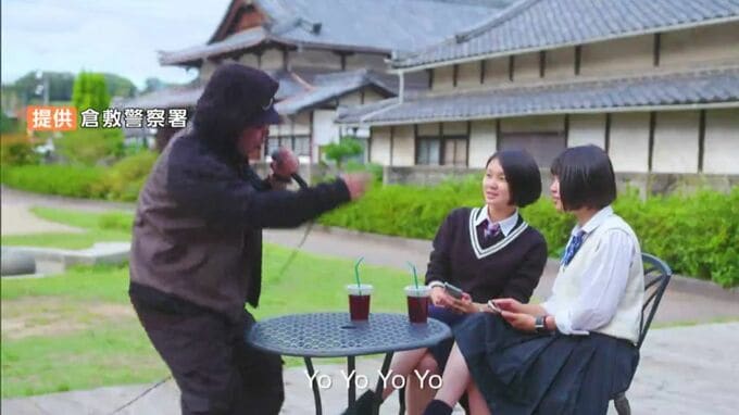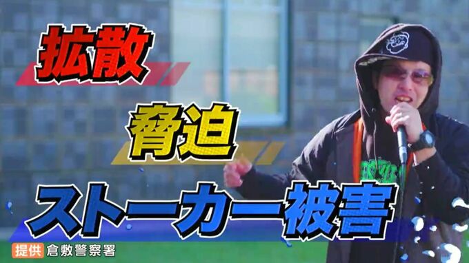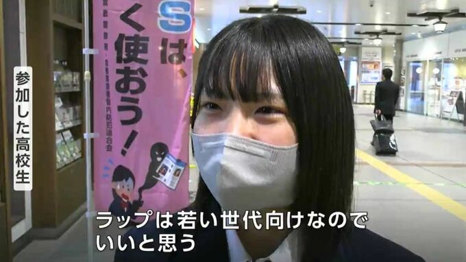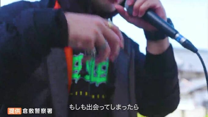 駅構内で啓発用のチラシを配られ、倉敷警察署の警察官がラッパーと女子高校生に扮した動画が流されました。