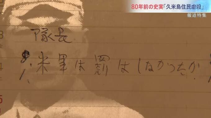 そして、島に戻った青年らを呼び出して、アメリカ軍の尋問の様子を問いただした。鹿山隊と呼ばれた日本軍に所属していた久米島出身の一人、仲原善助さんが手記を残していた。そこに、鹿山と青年らとのやりとりが記されていた。