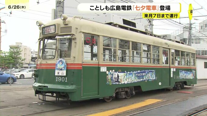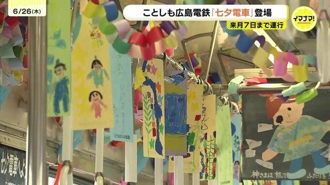ことしも広島電鉄の夏の風物詩「七夕電車」が登場し、子どもたちが願いを込めて飾り付けました。