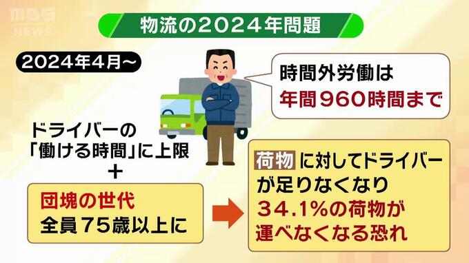 背景にあるのは物流業界が直面している待ったなしの危機的状況、いわゆる「物流の2024年問題」です。去年、ドライバーの時間外労働に年間960時間という上限が設けられ、これは働き方改革の一環で労働環境を改善するために不可欠な措置です。