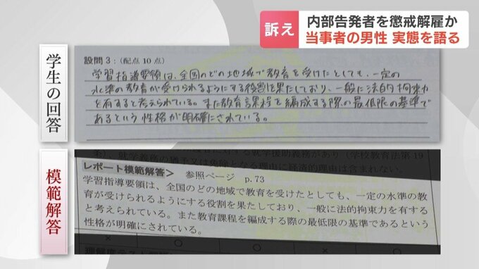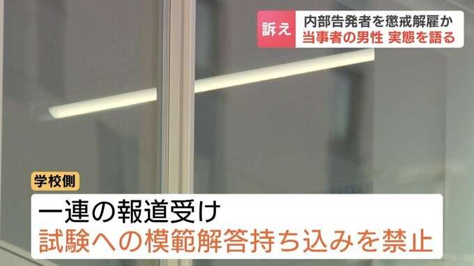 幼稚園の先生になるための免許の取得に必要な試験で、札幌の専門学校が模範解答の丸写しを認めていた問題で、学校側が問題を内部告発した男性教員を懲戒解雇していたことがわかりました。