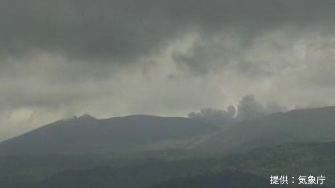 気象庁の監視カメラには、新燃岳の火口から噴煙が流れているのが確認できます。