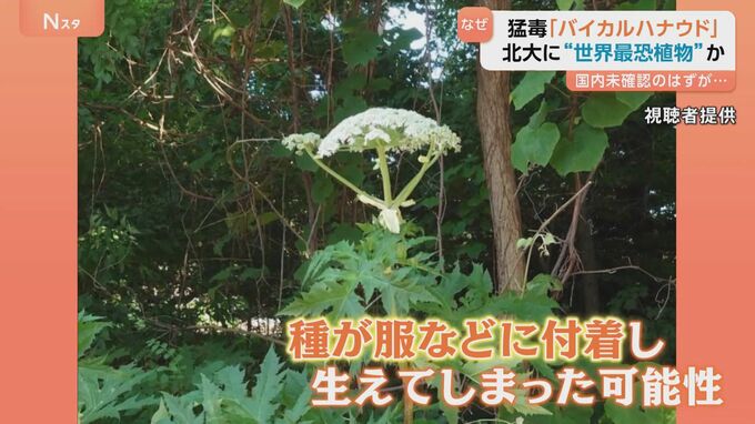 バイカルハナウドの種が服などに付着し、観光スポットとなっている北海道大学で生えてしまった可能性があるということです。