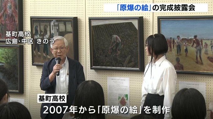 被爆者の証言をもとに高校生が描いた「原爆の絵」の完成披露会が27日、開かれました。