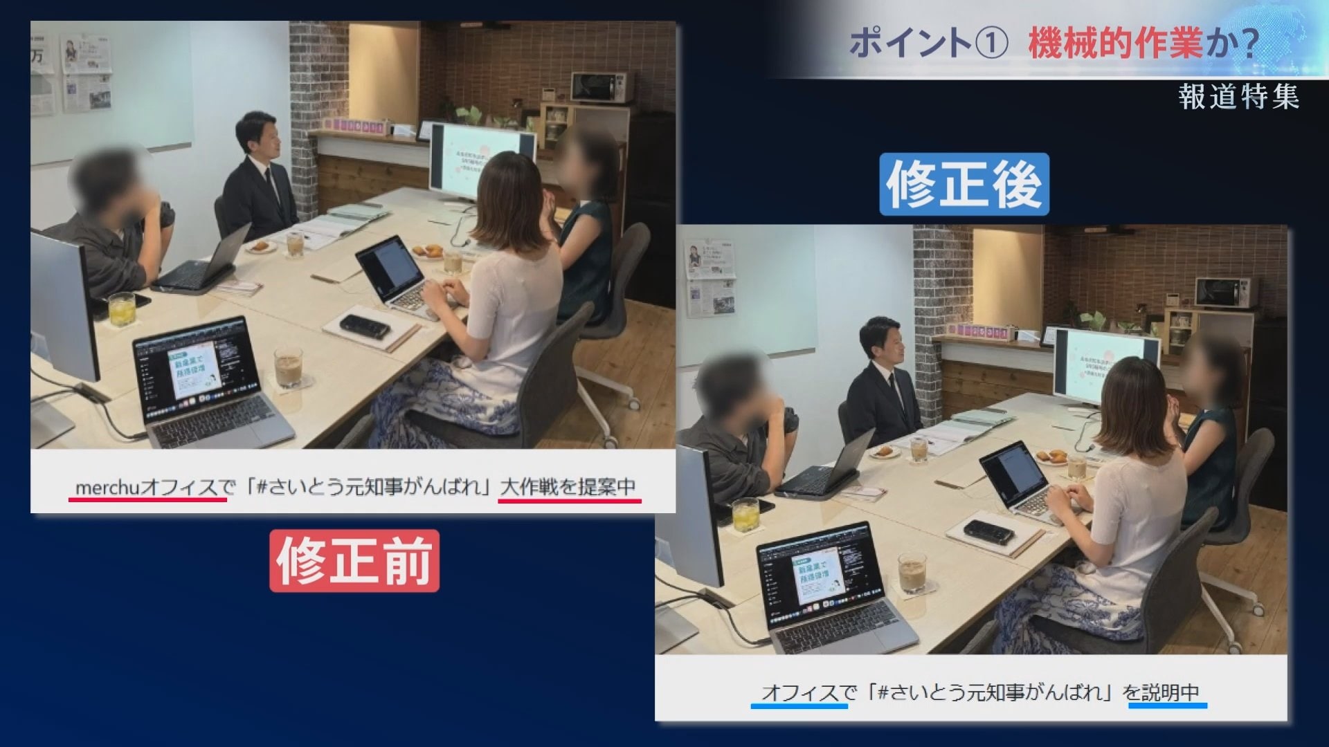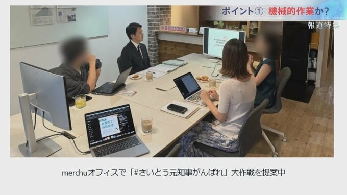 「#さいとう元知事がんばれ」のハッシュタグはA氏が生み出し、斎藤氏に提案したという。斎藤氏が見つめるモニターにも、こうしたSNS戦略の資料が映し出されているようだ。