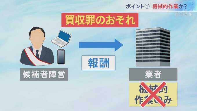 公職選挙法では、ポスターの印刷など機械的な作業のみを行う場合、報酬の支払いを認めている。だが、機械的な作業ではないものに報酬を支払うことは、公職選挙法の「買収罪」となるおそれがある。