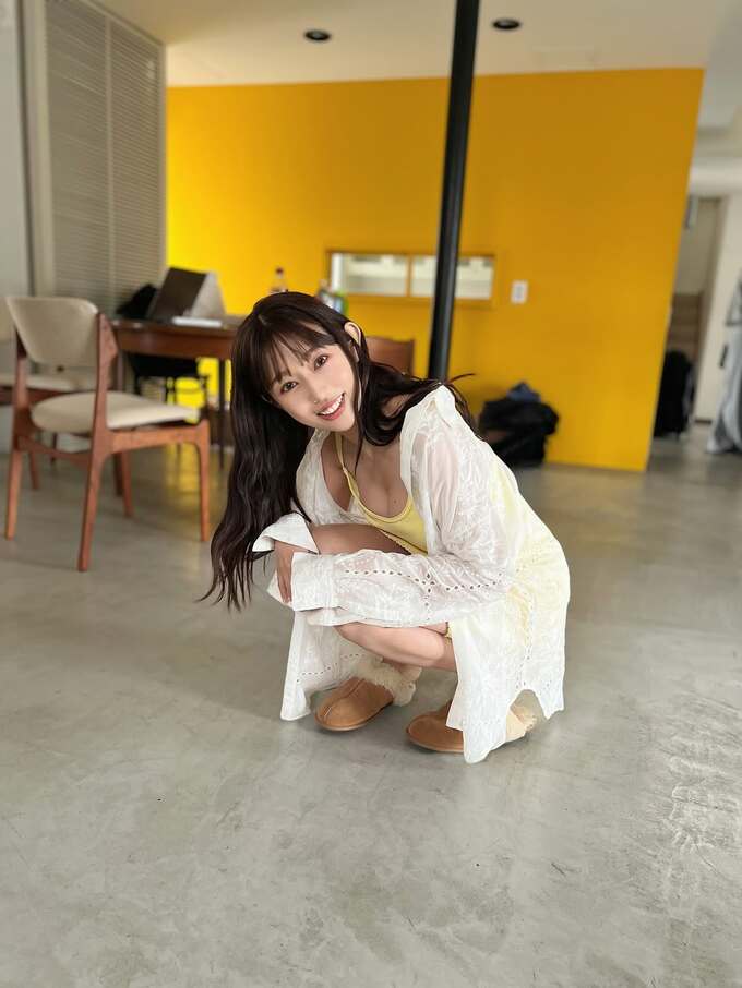 投稿された画像では、堀江聖夏さんが白いシャツと黄色のワンピースを身に着け、カメラの前で様々なポーズを取る姿などが見て取れます。