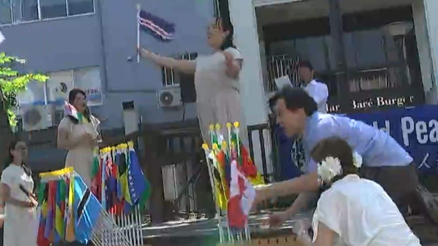 世界の国旗を掲げその国の人たちの平和を祈るピースフラッグセレモニーも行われました。
