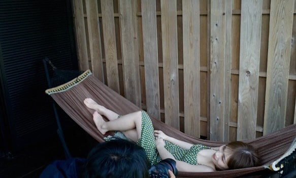 他にも秋元さんが、水玉模様の緑色の服を着て、木製の壁に囲まれた空間でハンモックに横たる姿の写真も投稿しています。