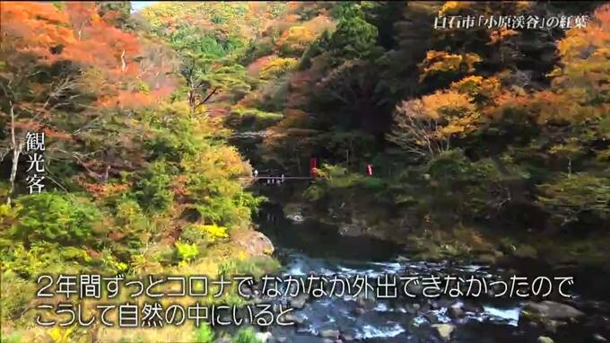 「小原渓谷」紅葉と昔ながらの湯治場スケッチ 宮城・白石 To view this video please enable JavaScript, and consider upgrading to a web browser that supports HTML5 video 東北放送 2022年11月10日(木) 19:08 国内 宮城県白石市の「小原(おばら)渓谷」で紅葉が見頃を迎えています。遊歩道には、秋を満喫しようと観光客が散策に訪れ温泉では、地元の人たちが昔ながらの湯治場の雰囲気を楽しんでいます。大津カメラマンの取材です。