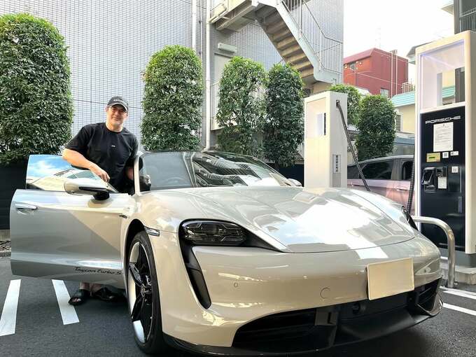 投稿された画像では、愛車のポルシェ「Taycan Turbo S」の隣で微笑む、髙田延彦さんの姿が見て取れます。