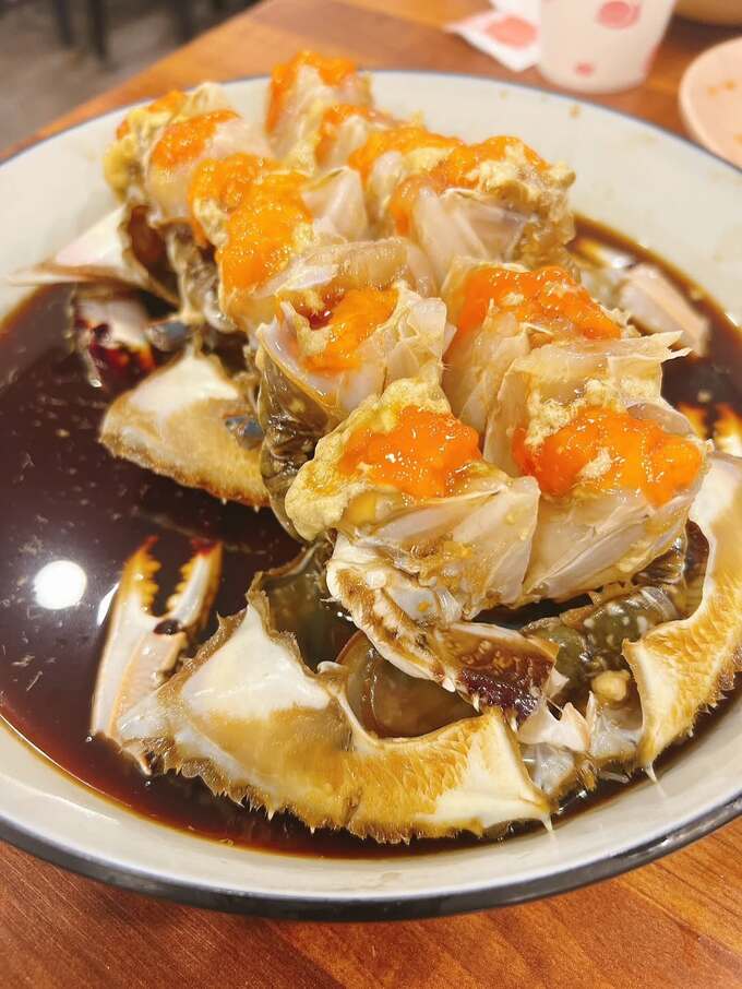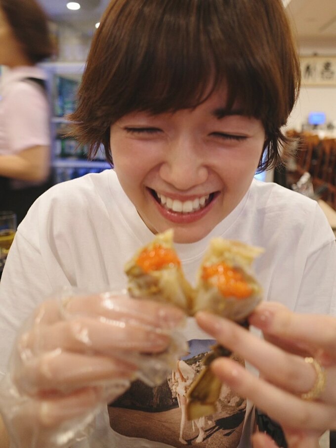 投稿された写真には、ワタリガニの料理が映っており、佐藤さんが手袋をはめて豪快に食べている姿も見られます。