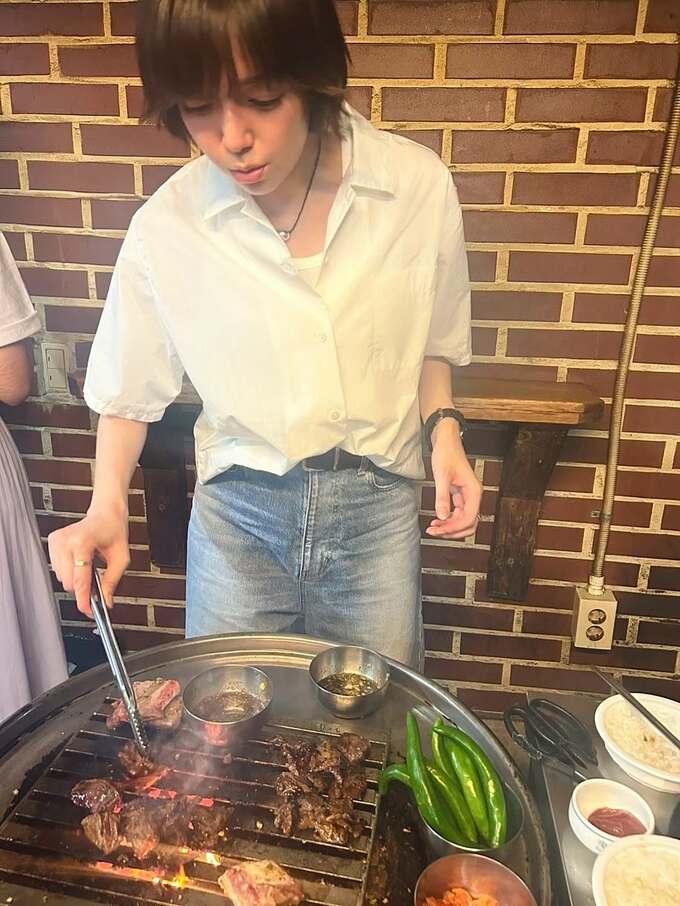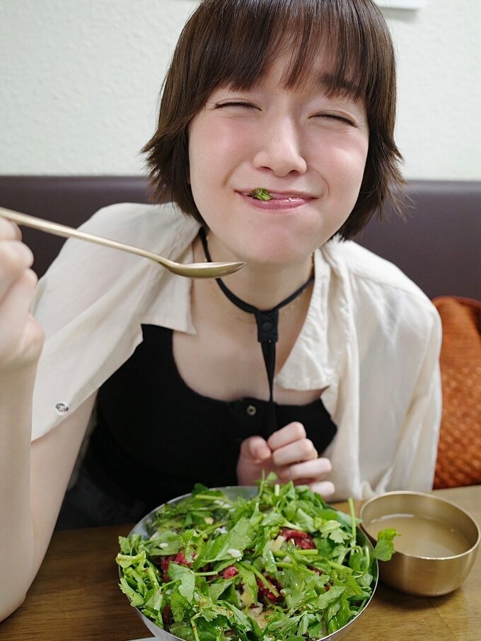 佐藤さんは焼肉店で、「旅っていいね韓国って美味しいね ただ、焼肉屋さんのお母さんにこの唐辛子はピーマンみたいな感じだから辛くないよと教えてもらって張り切ってかじったら ちゃんと辛くて口から火が出たのでそれだけは、気をつけてね」とフォロワーに向けて注意を促しています。