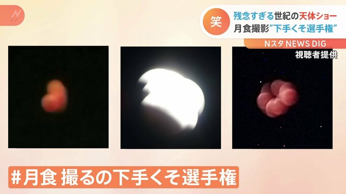 世紀の天体ショーに列島が興奮する中、SNSで話題の“月食撮るの下手くそ選手権”。中には物議を醸す作品も。撮影者「なんかもう月じゃない、変な玉ねぎ?」「月は2つあった」手ブレの影響で、なんと月が分裂!さら…