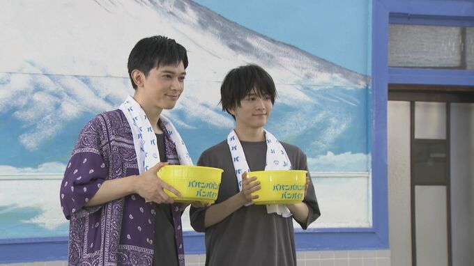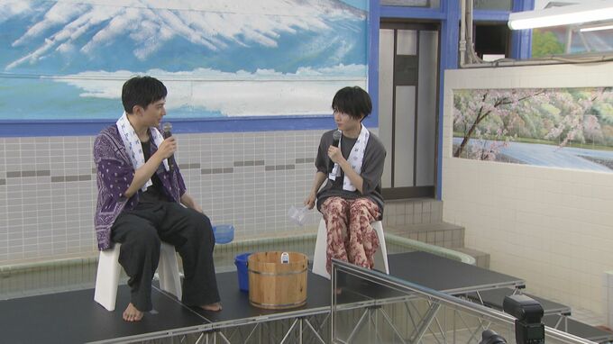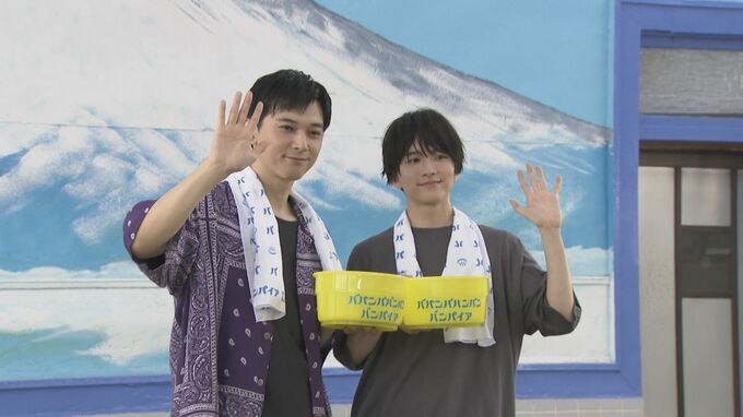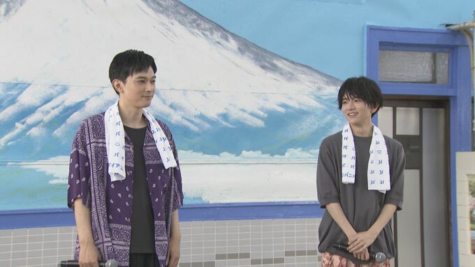 俳優の吉沢亮さんと板垣李光人さんが、東京・練馬区の銭湯「たつの湯」で、映画「ババンババンバンバンパイア」銭湯トークイベントを行いました。