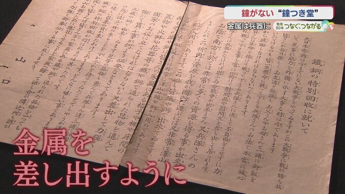 山口県岩国市の寺に、鐘がない鐘つき堂があります。鐘はどこへ行ったのか。当時を知る住職の母親の証言です。