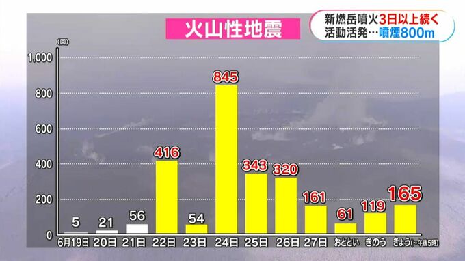 火山性地震は今月24日の845回がピークで、30日も午後5時までに165回と多いままで、活動が活発な状態が続いています。