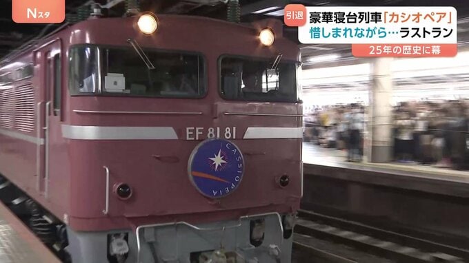豪華寝台列車として人気を集めたカシオペア。ツアー専用の列車として運行されていましたが、きょう、ラストランを迎えました。記者「ラストランを終えたカシオペアが上野駅に到着しました」さきほど到着した寝台特…