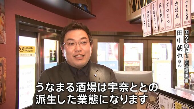 「うなまる酒場は宇奈ととの派生した業態になります。国内宇奈ととは90店舗以上ございまして、一括仕入れをすることによってこの価格が実現できています」