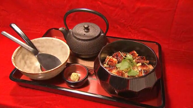 東京・新橋の「名代 うなまる酒場 新橋店」では、ランチタイムにサラリーマンが「ひつまぶし」を楽しんでいました。