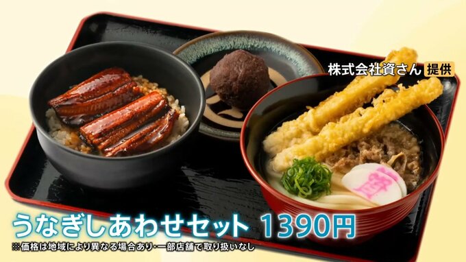6月18日から、うなぎメニューをスタートしたのですが、ミニうどんとミニうな丼に、ミニぼた餅のセット「うなぎしあわせセット」が1390円から楽しめ、「ミニうな丼」(単品)だと840円で食べることができます。