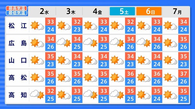 7月6日頃からは日本のほぼ全域で、この時期としては10年に一度程度しか起きないような「著しい高温」となる可能性 熱中症警戒 気象庁が「高温に関する早期天候情報」発表 山陰放送 2025年7月1日(火) 05:23 国内