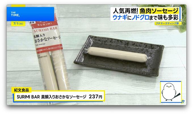 2月には、老舗練り物メーカーの紀文食品も参入。国産真鯛のほぐし身を使用した「SURIMI BAR 真鯛入りおさかなソーセージ」(50g×2本・237円)を発売するなど、魚肉ソーセージ市場は拡大の一途を見せています。