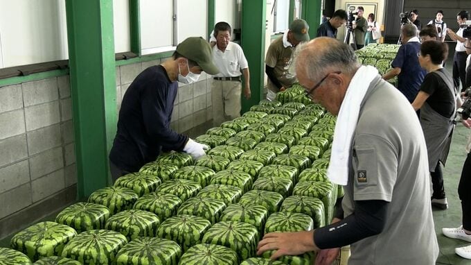 四角いスイカは今月中旬までに約400個が全国に出荷され、あさって(3日)から販売が始まるということです。