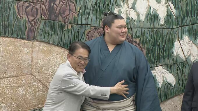 そして、愛知県の大村秀章知事も大の里関の大きな体に抱き着いて笑顔に。192センチ、191キロの大の里関の体格の良さが際立ちます。横綱になって初めて迎える場所では3場所連続優勝が期待されています。