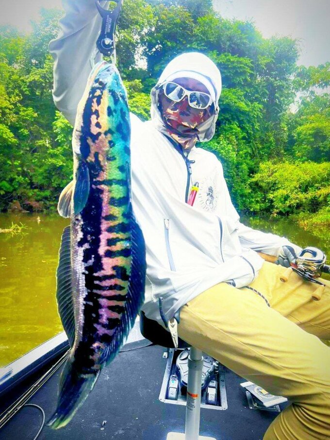 GACKTさんは「マレーシアにはトーマンと呼ばれる怪魚【GIANT SNAKEHEAD】がいる」と書き出し、川のボートの上から何度も竿を振る動画を投稿。