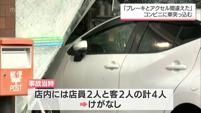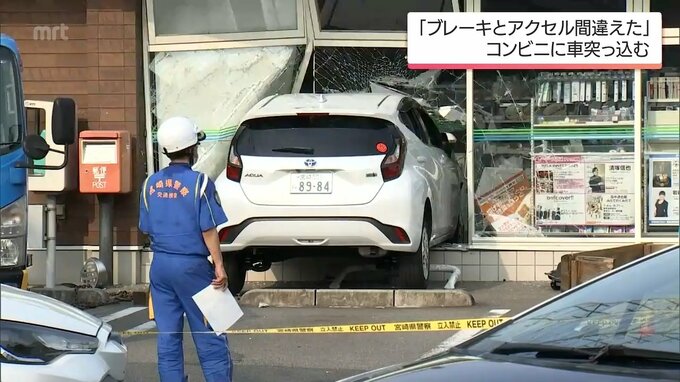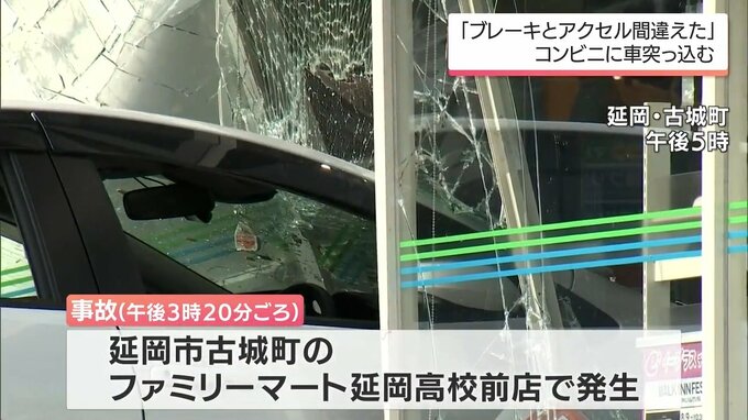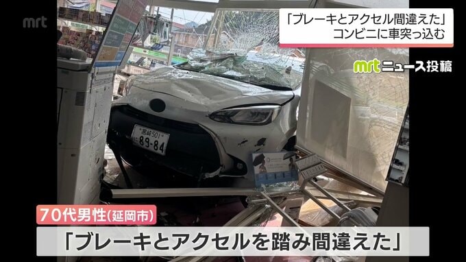 1日午後、延岡市のコンビニエンスストアに普通乗用車が突っ込む事故がありました。運転していたのは70代の男性で、「ブレーキとアクセルを踏み間違えた」と話しているということです。
