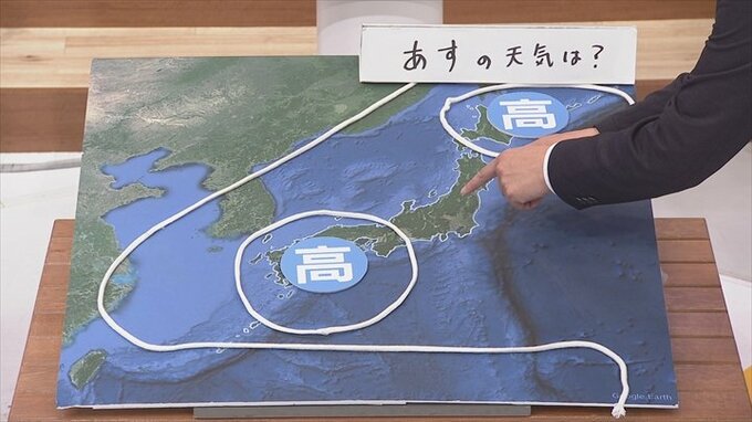 となると、相対的に気圧が低い状況となりますので、あすはきょうのようにおそらく午前中は晴れずに雲が広がりやすい天気となります。